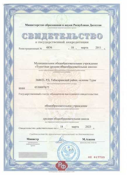 | Адрес местонахождения образовательной организации* | Республика Дагестан, Табасаранский район с.Тураг ул.Центральная, корпус 2, 368653 |